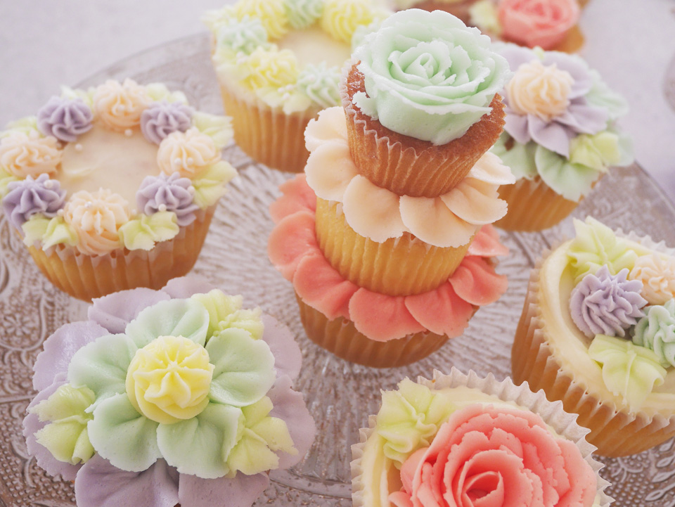 アメリカやイギリスのお店に並んでいるような、パレットを使用したトラディショナルなカップケーキのレッスンです。カップケーキの生地作りから、バタークリームの作成、色付け、ベーシックデコレーションまでを行います。